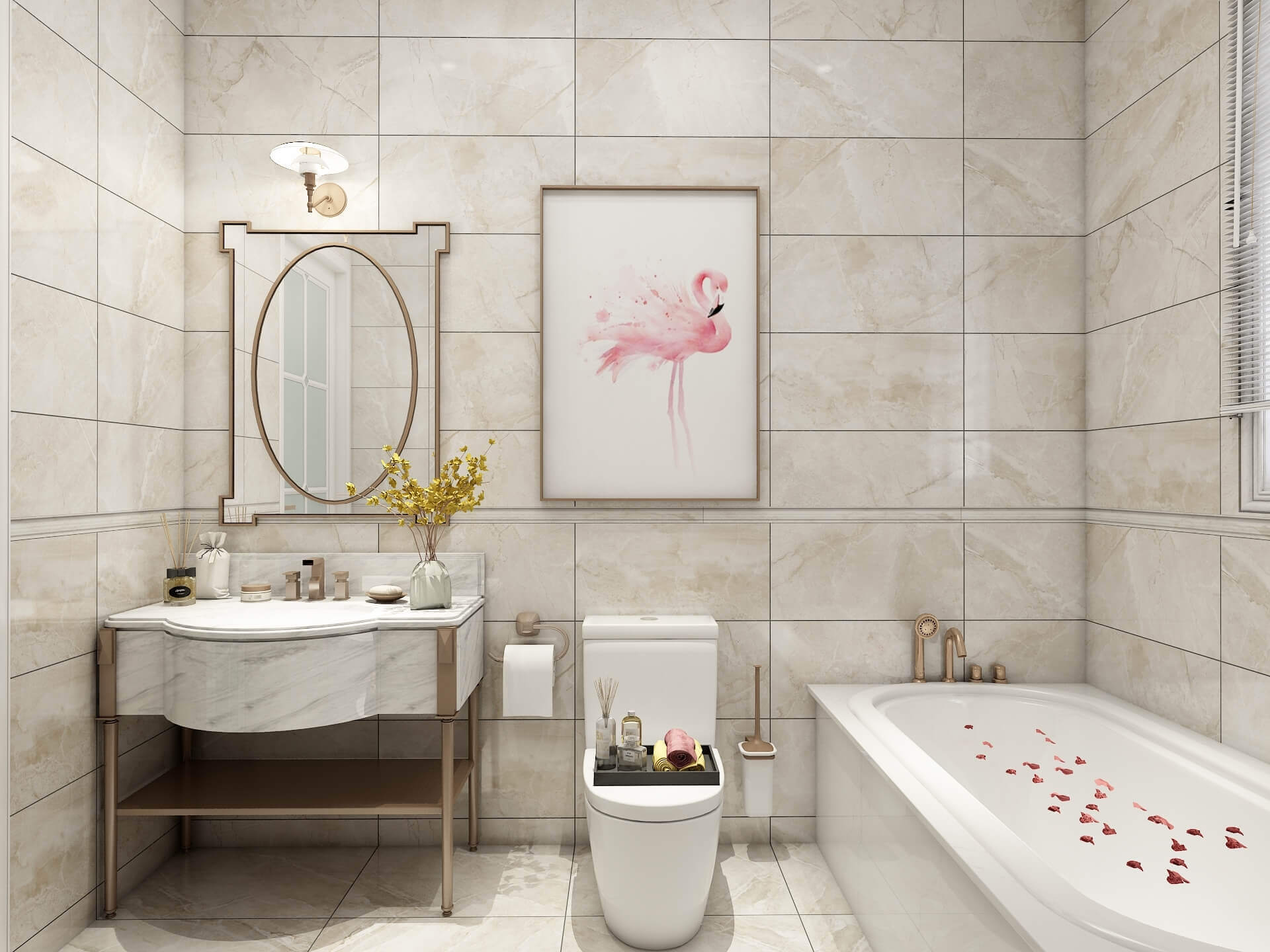 地面、背景墻自由鋪貼單磚、多磚、腰線、水刀拼花、波打線。